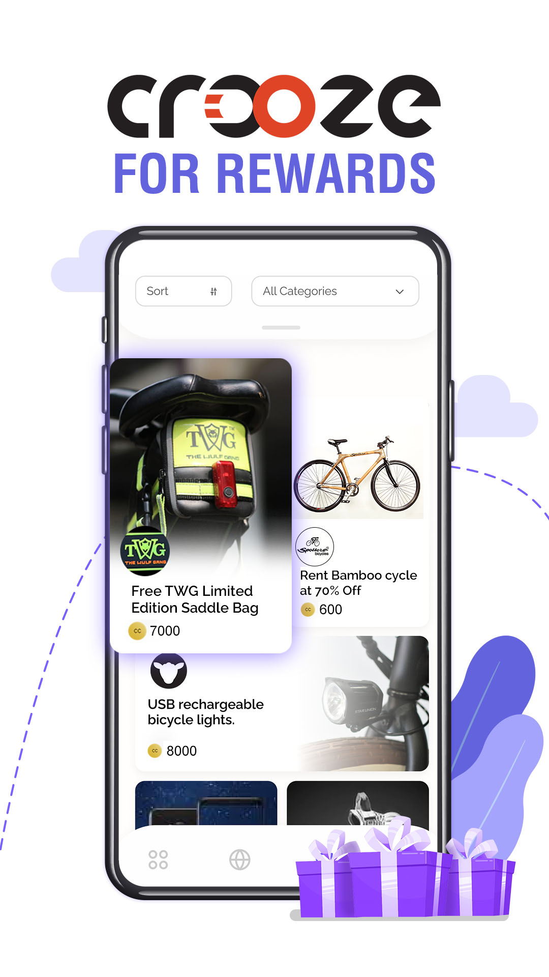 - 1km =5 Crooze coins = 150 gms of Carbon saved